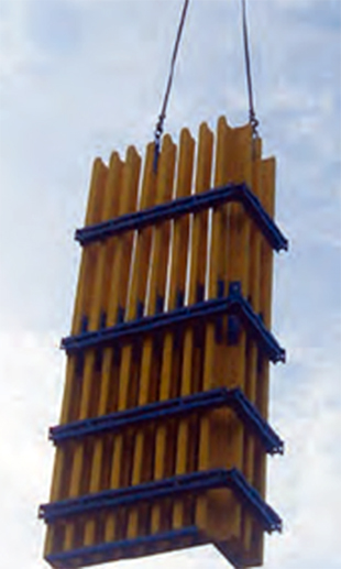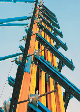 Column Girder H20 System is a assembled completly from plywood connected to vertical HT 20 timber beams and sequentially drilled and slotted multi‐purpose NPU 100 steel walers.