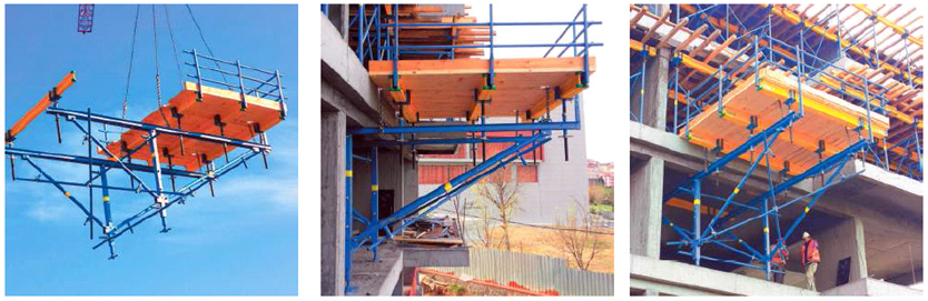 This system used for for formwork and materials moving. Firstly, slab formwork or materials can move to this brackets by table carrier or trolly. After that, slab table or materials formwork can move to next floor by table lifting fork or crane directly. Safe working load on this bracket should taken from technical departments.